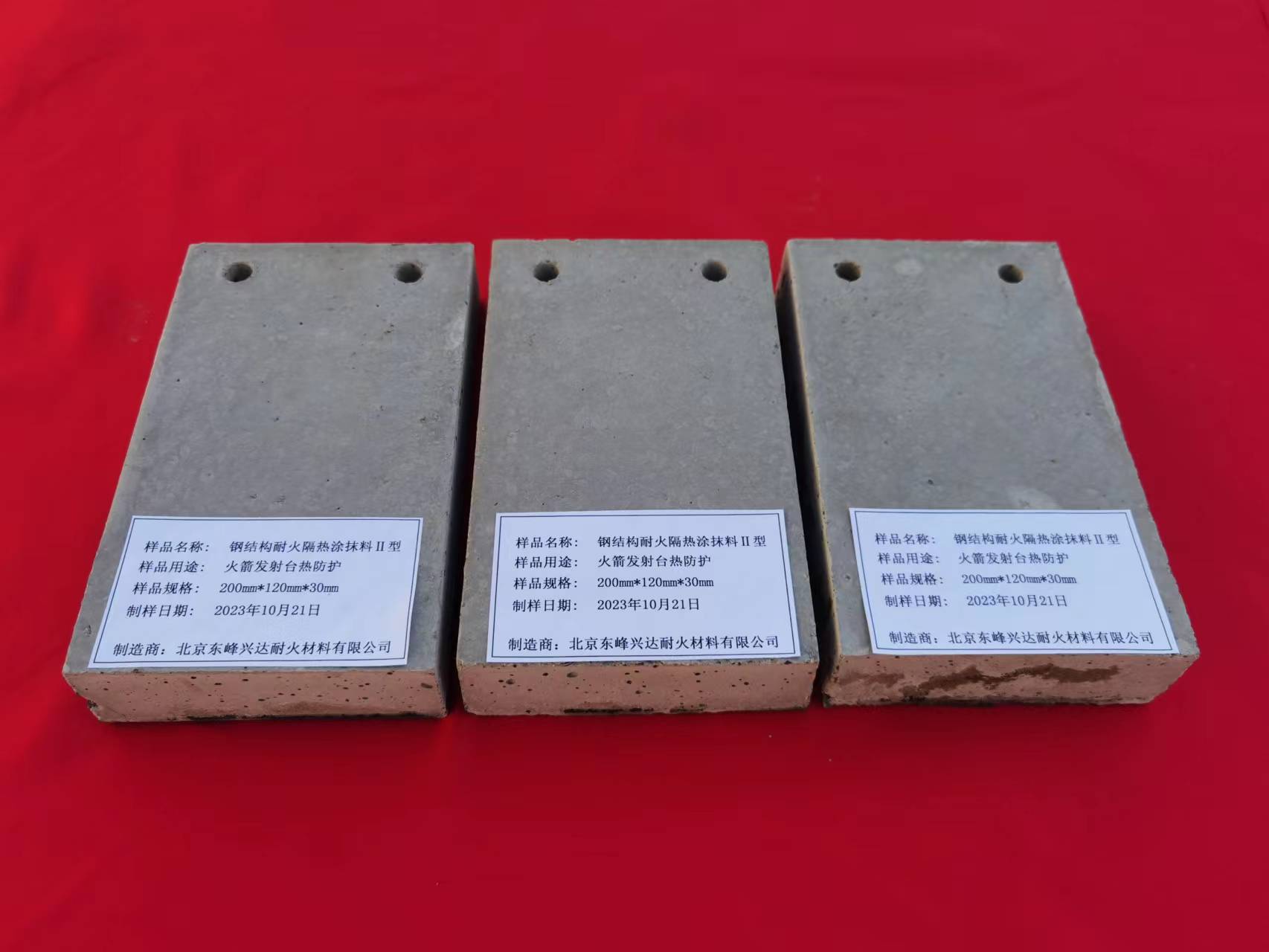 近日,我司钢结构耐火隔热涂抹料在北京航天长征飞行器研究所完成烧蚀试验。实验条件:测试设备为YA6804型氧气煤油发动机;发动机燃烧室压力1.4±0.05Mpa;发动机余氧系数0.7±0.03;发动机喷口直径65mm;喷口出口燃气温度2210K;喷口燃气速度2390m/s;燃烧室温度3470K;烧蚀时间10s/件;试样表面***大热流密度17.9MW/m2;试样表面压力值0.37Mpa;试样表面温度约为2300℃,经过高温高速气流烧蚀10s后试样外形完整,没有出现掉块脱落现象,表面没有裂纹,表面成玻璃相,背部温升大约在15℃,隔热性能良好!试样烧蚀速率≤1.7mm/s,质量烧蚀率≤40g/s,此次实验取得圆满成功!