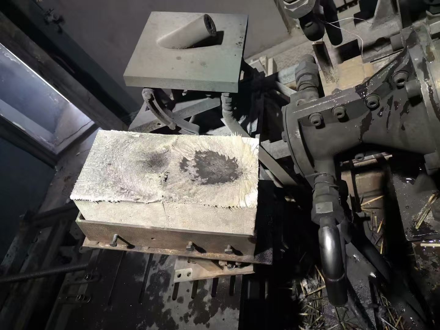 近日,我司承揽某商业航天公司火箭动力系统试车台修复项目中,使用本公司DF-70耐高温耐烧蚀混凝土 百余吨,在施工现场取样,同条件养护下,试样在北京某飞行器研究所完成烧蚀实验。