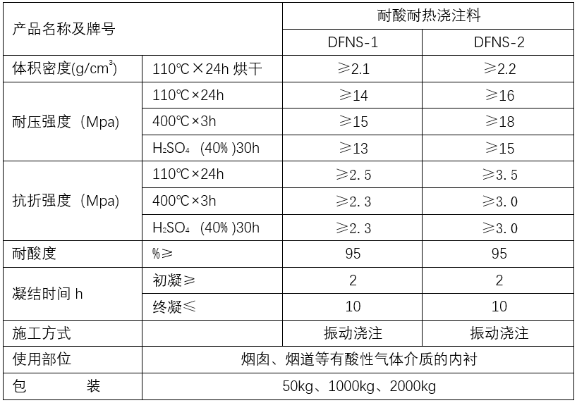耐酸耐热浇注料是一种新型防腐类浇注材料,它和易性好,施工方便,初凝,终凝时间适中,经过高温烘烤后强度继续增长,且防渗,抗酸性能不降低。