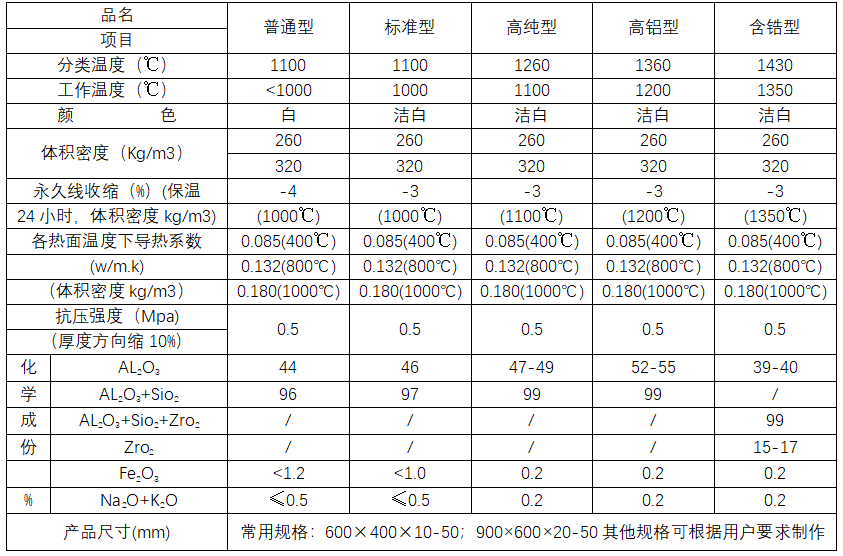 普通型、高纯型、高铝型、含锆型硅酸铝甩丝纤维板